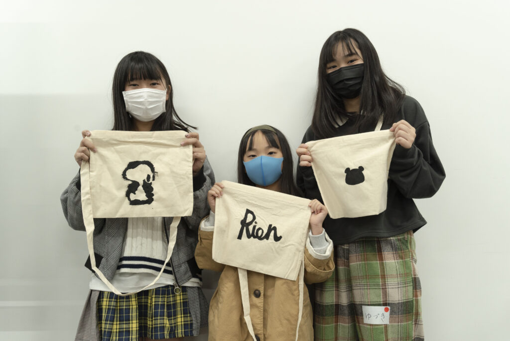 内容:ステンシルで自分のマークを作ってサコッシュに印刷していきます。クリアファイルで作ったステンシルを外に持ち出して、汚れを取って図像を浮かび上がらせるリバースグラフィティも行いました。みんな思い思いのマークを作って自分だけのグッズが作れました。
