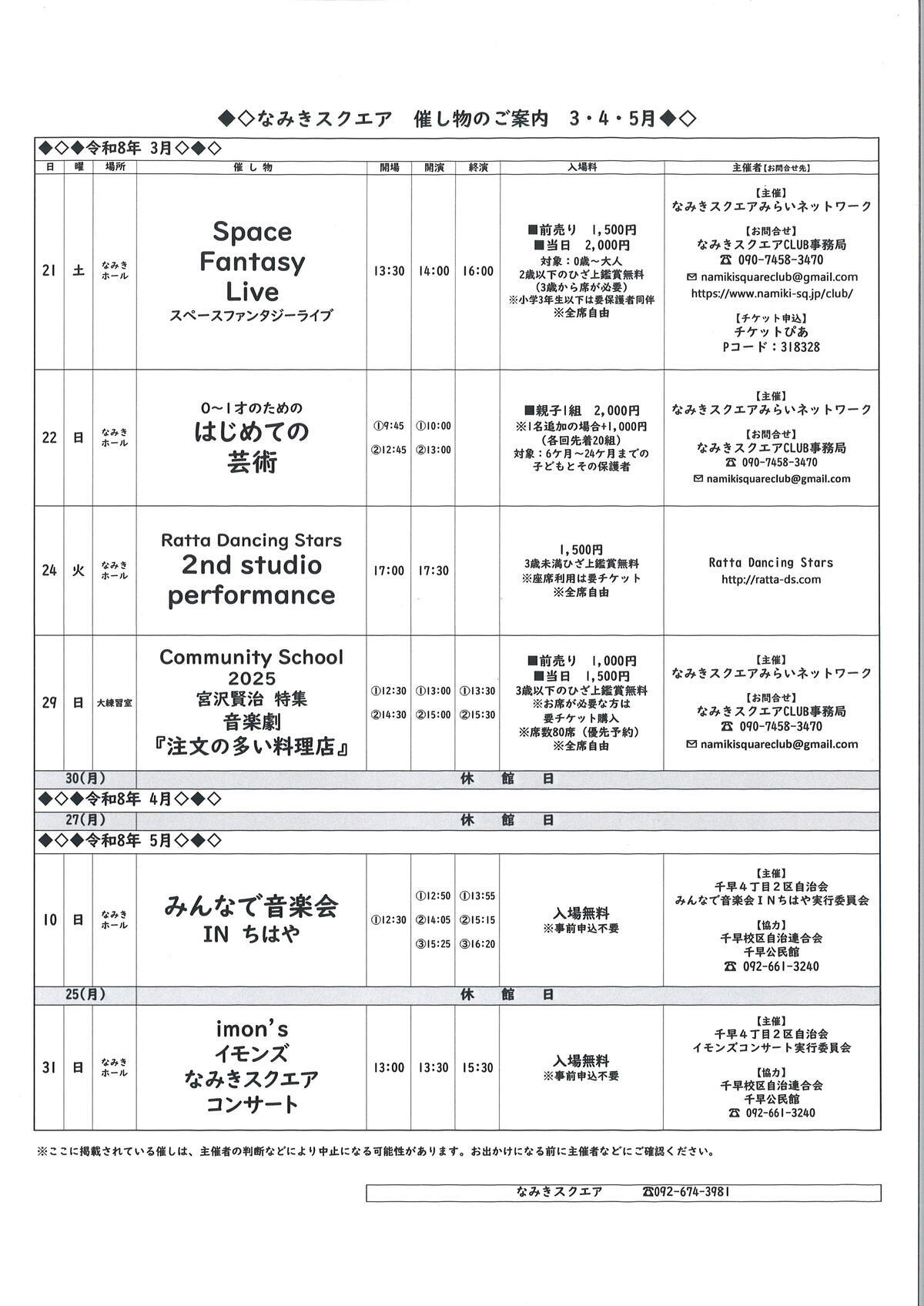 | 会場 | 1階 大練習室 (千早音楽・演劇練習場) |