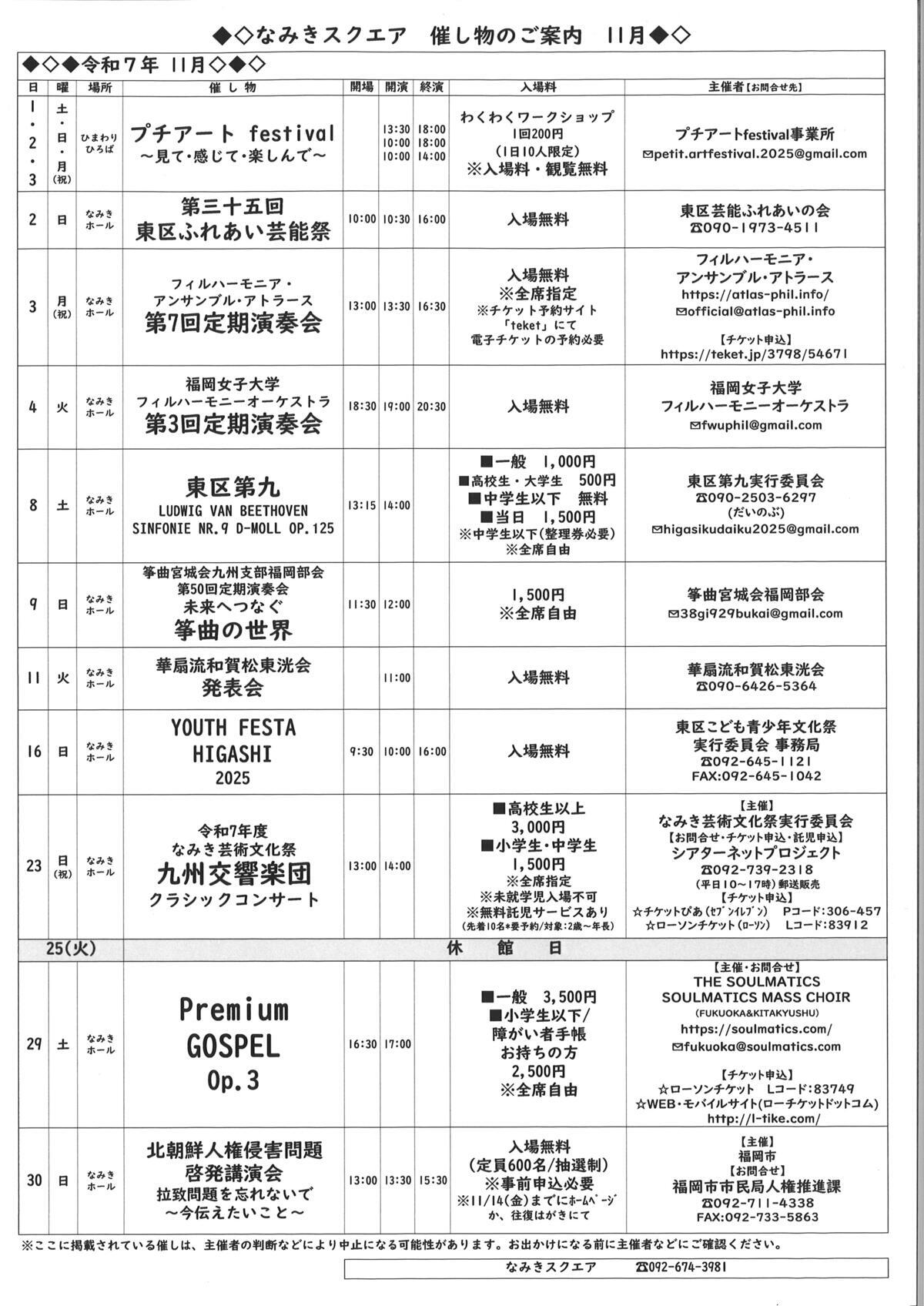 なみきスクエアで開催されるイベントの一覧です。