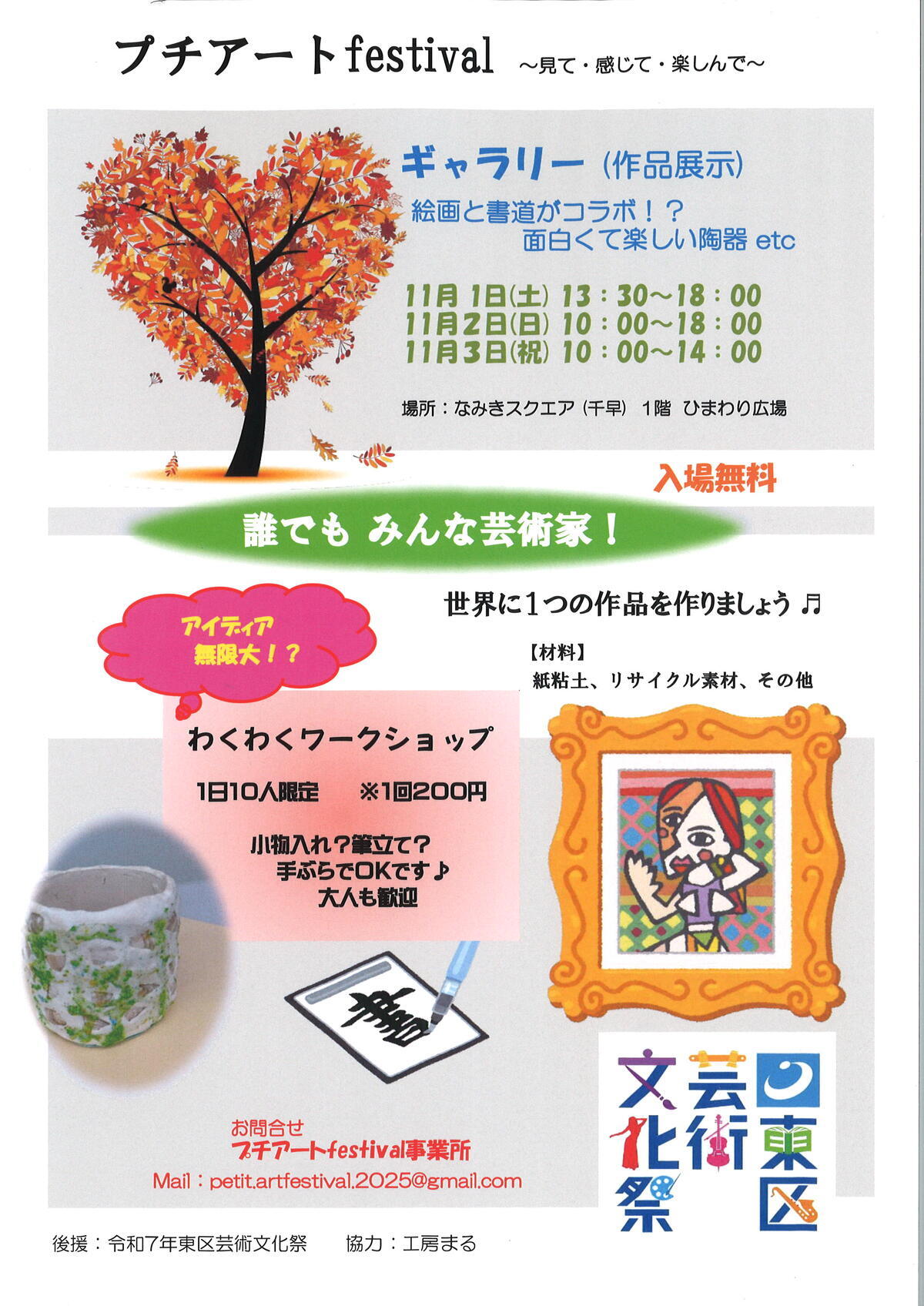 お問い合わせ先 | プチアートfestival事務所 mail:petit.artfestival.2025@gmail.com |