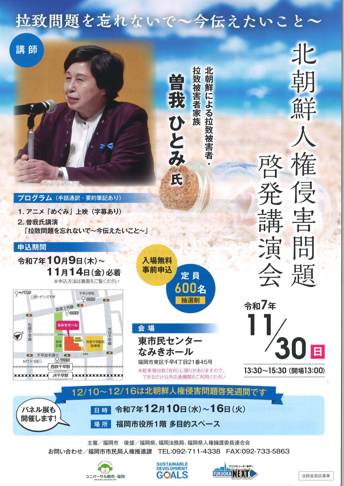 | お問い合わせ先 | 福岡市市民局人権推進課 TEL:092-711-4338 FAX:092-733-5863 |