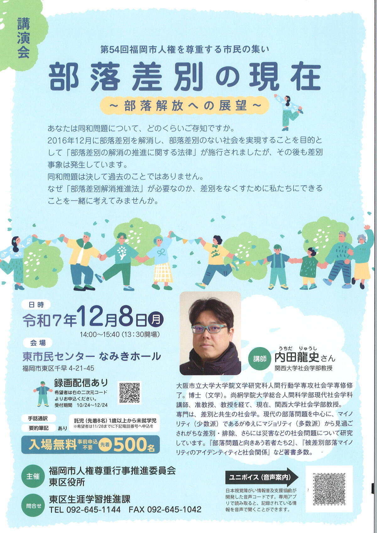 | お問い合わせ先 | 東区生涯学習推進課 TEL:092-645-1144 FAX:092-645-1042 |