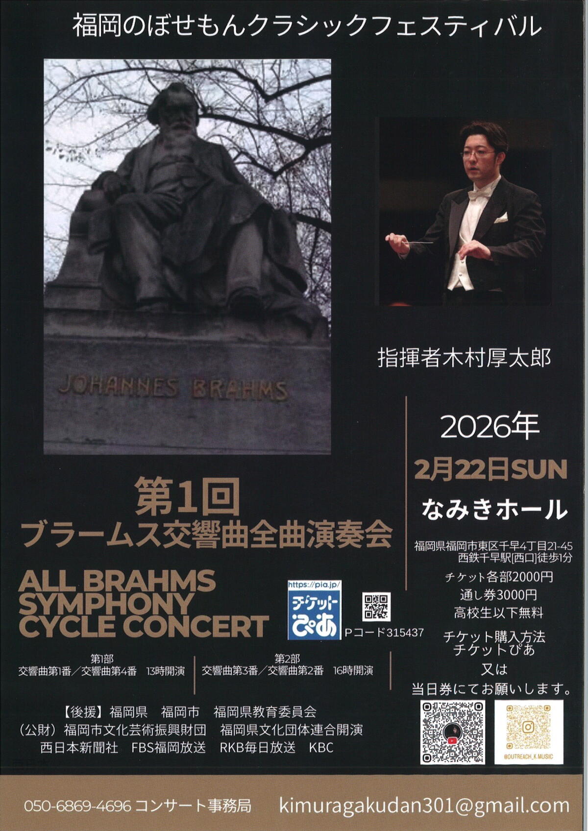 | 開催日時 | 2026年2月22日(日) 【第1部:交響曲第1番/交響曲第4番】 開演13:00 【第2部:交響曲第3番/交響曲第2番】 開演16:00 |